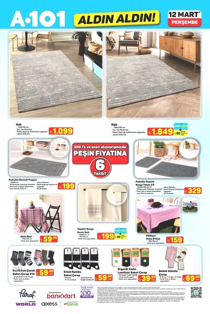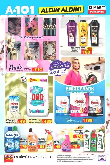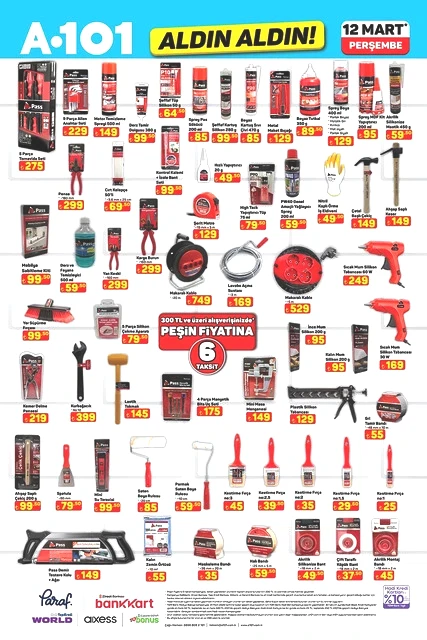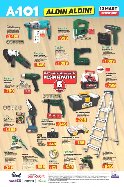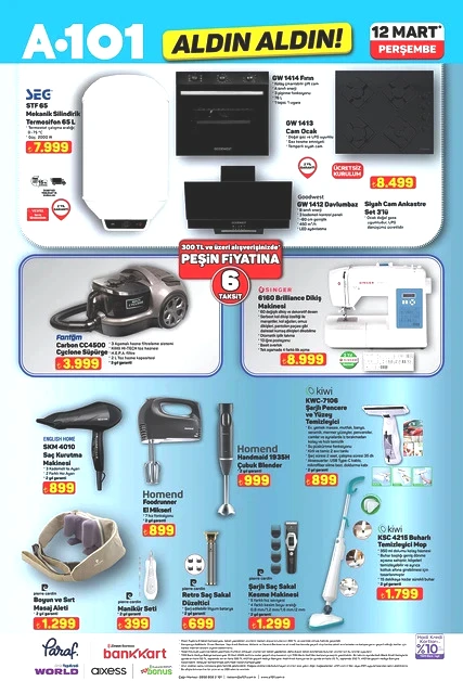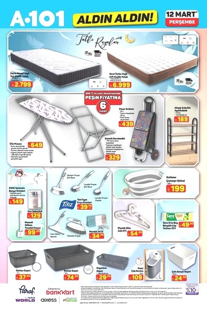 A101'in güncel indirimli ürünler kataloğu açıklandı. 12 Mart tarihli A101 kampanya broşüründe buharlı temizlik mop'u 1.799 TL, şarjla çalışan pencere ve yüzey temizleyici 899 TL, manikür seti ise 399 TL'den satışa sunuluyor. A101 aktüel ürünler listesinin tamamı ise merakla bekleniyor. İşte A101'in indirimli ürünlerinin listesi